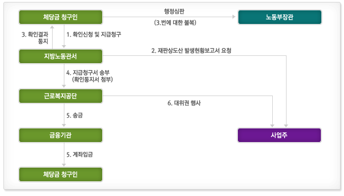 | ü´ç±Ý Áö±Þ ½ÅûÀÇ Àû°ÝÀڴ ü´ç±Ý Áö±Þ ½Åû¼¸¦ Á¦ÃâÇÏ°Ô µÇ¸ç, ÀÌ¿¡ ³ëµ¿ºÎ´Â ¼ÒÁ¤ÀÇ ÀýÂ÷¸¦ °ÅÃÄ ±Ù·Îº¹Áö°ø´Ü¿¡ Áö±ÞÀÇ·Ú¸¦ ÇÏ°Ô µÇ¸ç, ÀÌ¿¡ ±Ù·Îº¹Áö°ø´Ü¿¡¼ °³º° ±Ù·ÎÀÚ¿¡°Ô ½ÇÁ¦ ü´ç±ÝÀ» Áö±ÞÇÏ°Ô µË´Ï´Ù. |